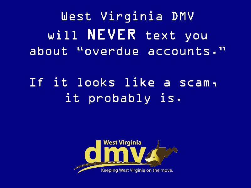 Remember, if it is a text asking for payment, it is a scam. West Virginia DMV will never text you requesting payment.
