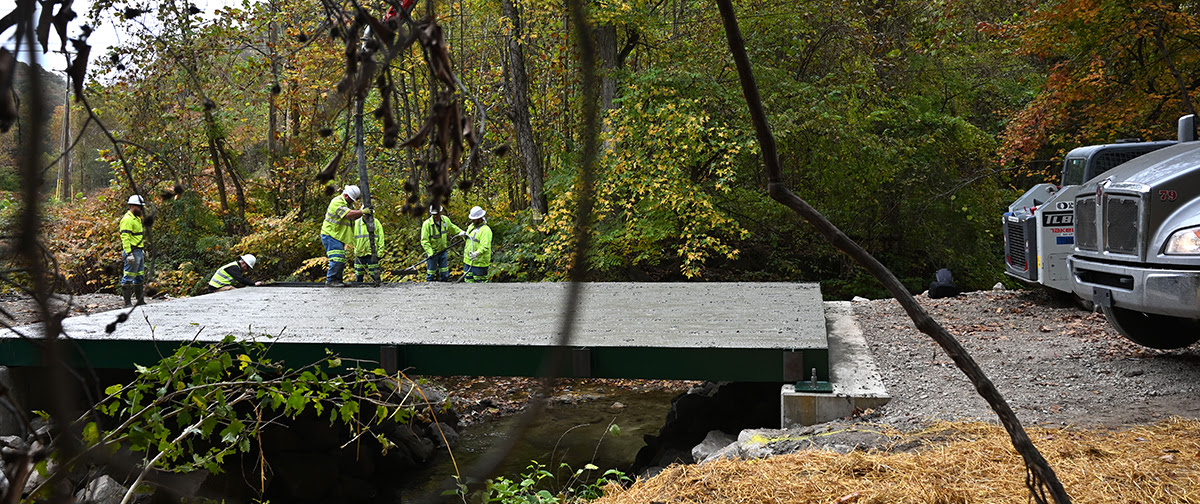West Virginia Division of Highways (WVDOH) District 1 bridge crews took the next step in reopening a short span bridge on Rutledge Road in Charleston on Monday, October 27, 2025, when they poured the concrete deck on the new bridge. The WVDOH closed the bridge on Rutledge Road on Friday, August 8, 2025, after a routine bridge inspection revealed deterioration in the steel beams supporting the structure. One lane of the roughly 18-foot bridge had been closed previously. |